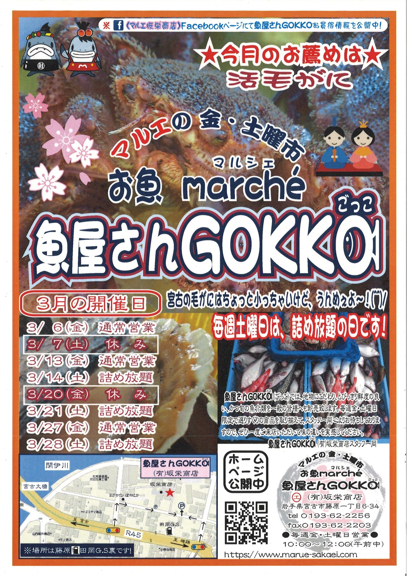 ※3月は宮古魚市場休場の都合で、7日(土)と20日(金)がお休みとなります!
